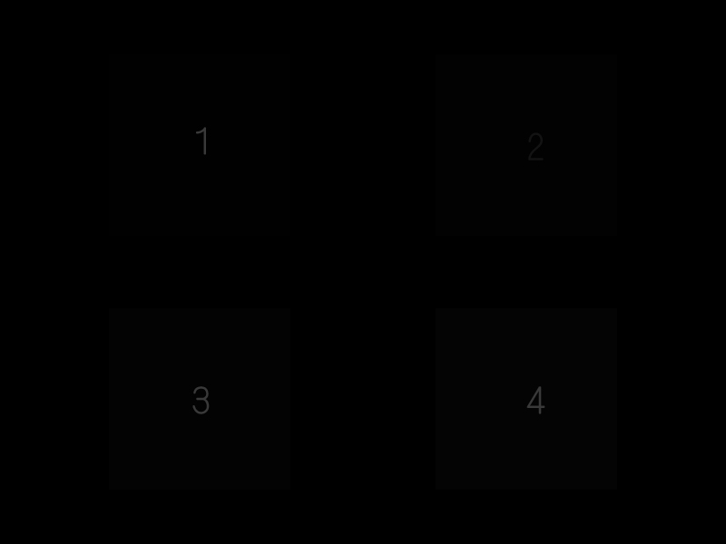 - 試しに今度はブライトネスを最大にしてみて下さい。黒い画面から四角が4つ見えてくる。
