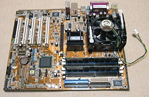 将来性はあるが、情報が少なく初期不良がやや不安な新チップセットをあきらめ、枯れて安定している645Pのチップセットを使ったマザーボードASUSのP4P800SE、CPUはPentium4の2.8G、残ったお金でメモリは512M×2、珍しく予算内に収まったと思ったのだが、帰路につく私の紙袋にはなぜかPentium4の3Gが(^_^;)
