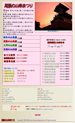 このHTMLファイルは、webブラウザやOSなどの閲覧環境が変わっても同じように見られることが前提になっている。つまりWindows98であろうと、XP、最新のVista、そしてマックでも同じように「尾張の山車まつり」が見えなければならない。