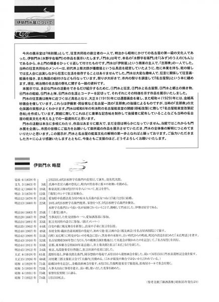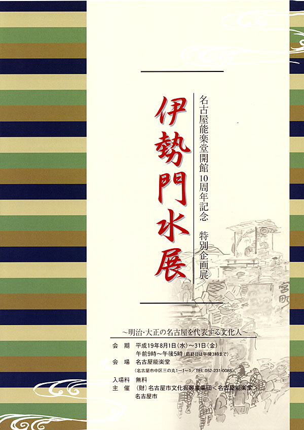 名古屋能楽堂開館10周年記念の特別企画展として「伊勢門水展」が開催されます。