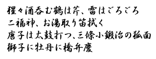 東照宮祭のからくりは、端唄で名高い十日夷の替え唄に、お祭り盡(尽)しで思い伝う、東照宮祭の唄がありました。この端唄の詩は、からくり人形の特徴を山車の曳行順に表現されています。