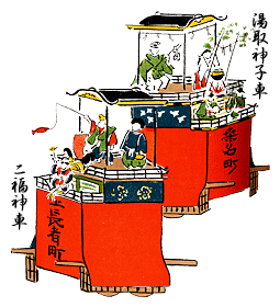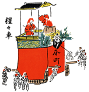 小鍛冶車は、刀を打つ三条小鍛冶の相槌を努める少女が、狐に変わる面かぶりのからくりで、見物を沸かせました。